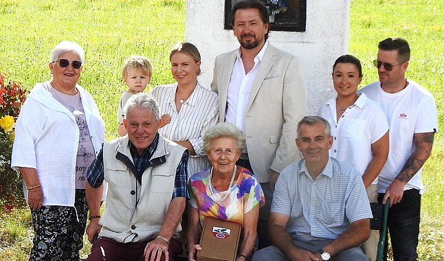 Seitens des Seniorenbundes Hoheneich gratulierten Obmann Otto Riedl und Franziska Ciboch Frau…